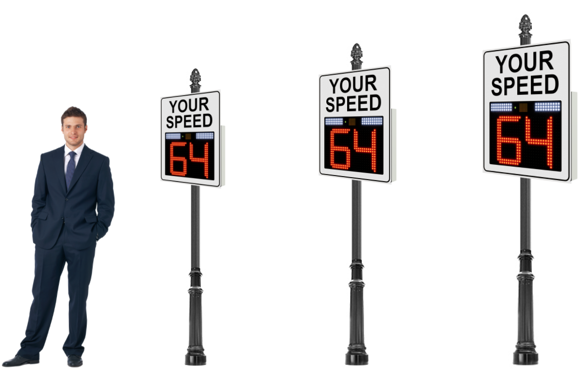 iCop Radar Speed feedback sign is a full matrix sign with capabilities to display custom messages and alerts,. The sign includes a full matrix for text, graphics, or 12” speed display, including speed activated digit color changes and choice of messaging color